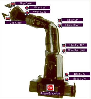 The Robotic arm is the OWI 007 Robotic Arm Trainer with the 007 / PC Arm Interface. The Webcam is an Ezonics cam with a Java interface for viewing.